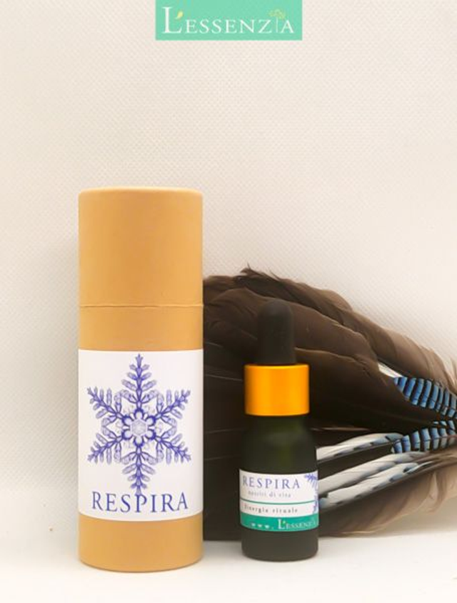 3. Sinergia 'Respira' (10ml): Il sollievo immediato. Balsamico puro con Eucalipto e Menta Verde. Da usare ai primi segni di naso chiuso o pesantezza per liberare l'aria e tornare a respirare a pieni polmoni.